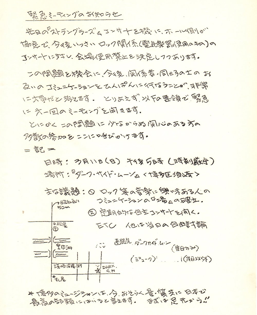 博多ビートユニオン創立からロッククラッシュ(コンサート)に至る活動をめぐる資料が見つかった。