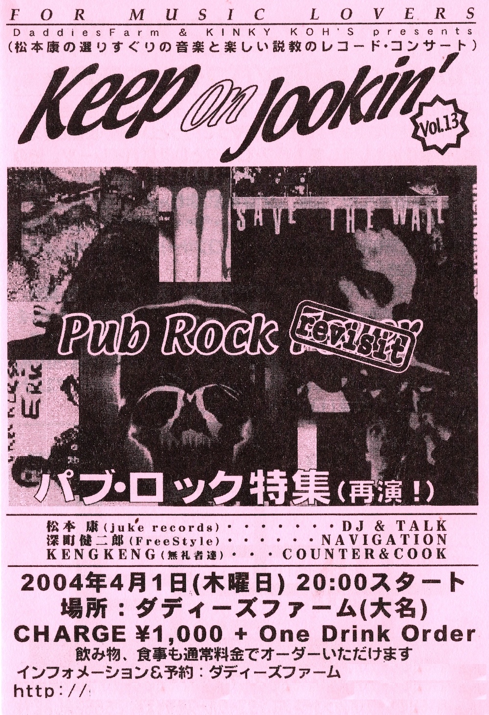 <KEEP ON JOOKIN' Vol.13>パブ・ロック特集
