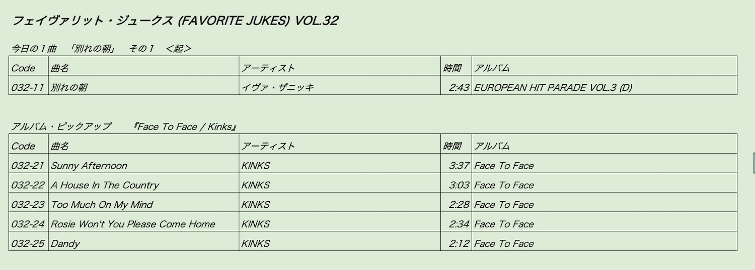FAVORITE JUKES オンエアプレイリスト #32