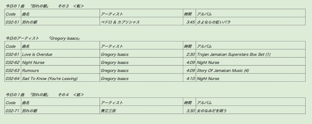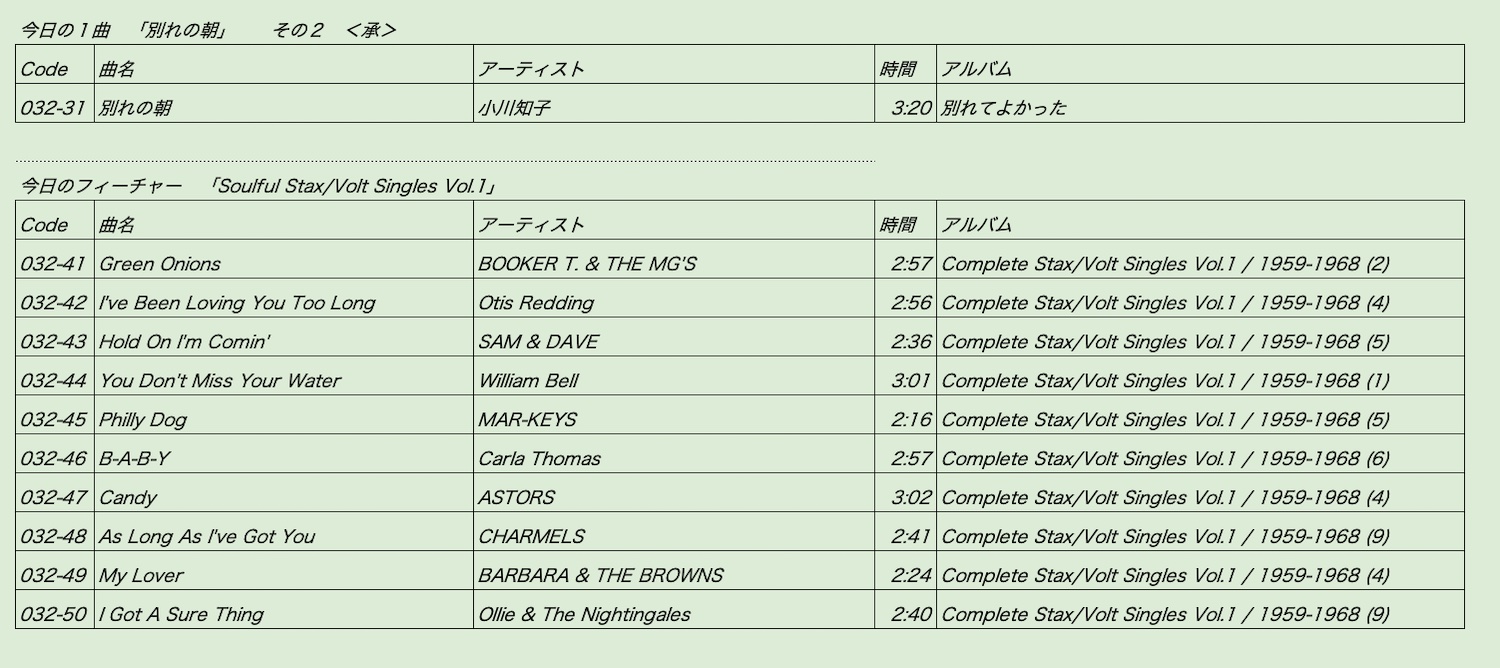 そのオンエアプレイリストを発掘。