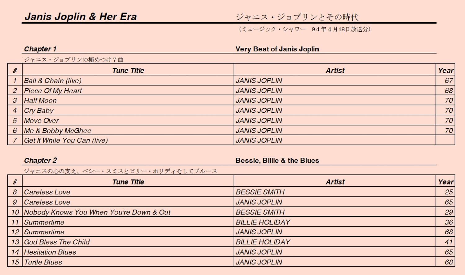 Music Shower オンエアプレイリスト 1994年4月18日放送分