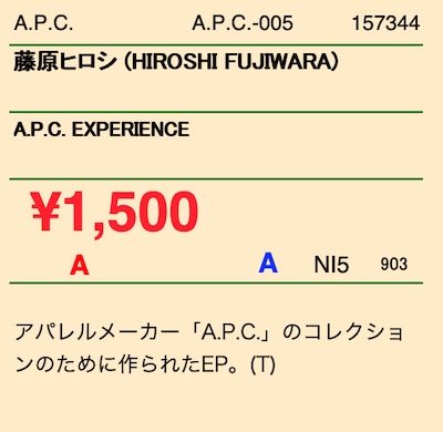 藤原ヒロシ (HIROSHI FUJIWARA) - A.P.C. EXPERIENCE