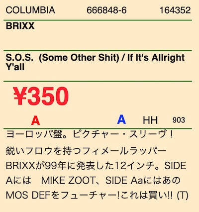 BRIXX - S.O.S. (Some Other Shit) / If It's Allright Y'all 2025-11-18 最終更新日時 : 2025-11-07 信行中谷 Screenshot