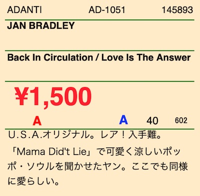 JAN BRADLEY - Back In Circulation / Love Is The Answer