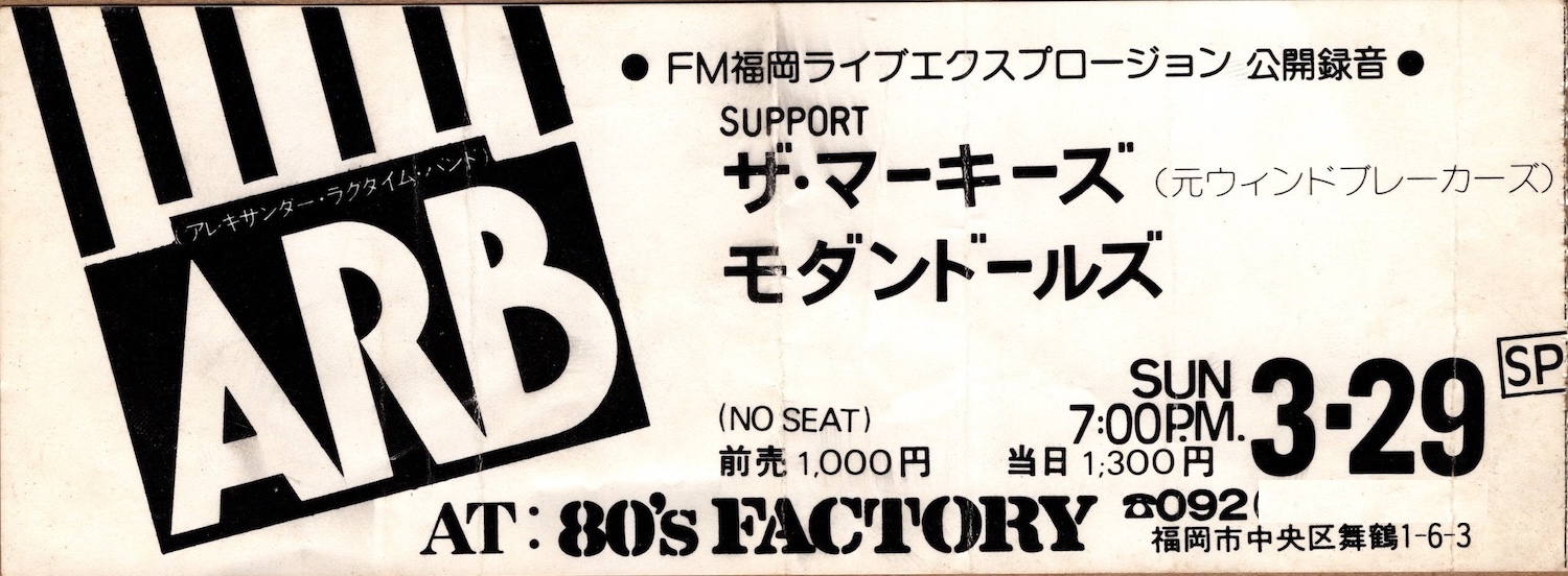 <チケットコレクション>ARB 2026-02-19 最終更新日時 : 2026-02-14 信行中谷 ARB , ザ・マーキーズ , モダンドールズ / 80's FACTORY / 1981年3月29日日曜日