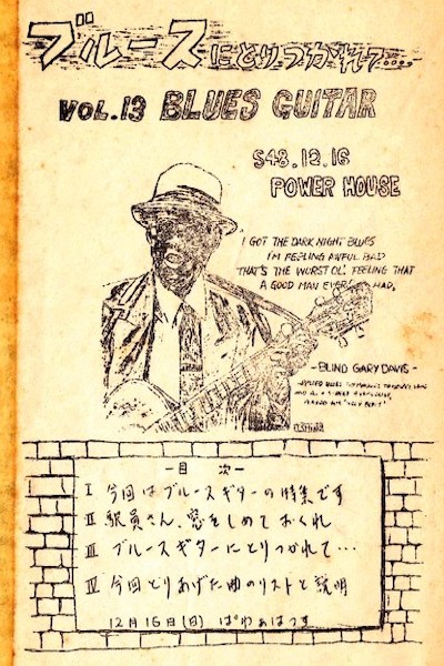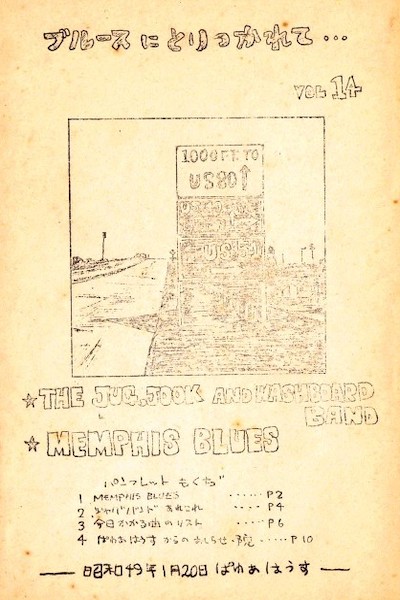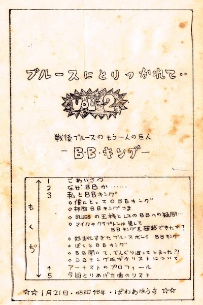 後々のDJイベント(●正しい?)「キープ·オン·ジューキン」でも「ブルースにとりつかれて」のときのように資料のパンフレットを作って配っているが、そういう方法も高校時代に新聞部だった鮎川誠から教えてもらった。そして、自分から何かをしなければ身につかないということも彼から教えてもらった。