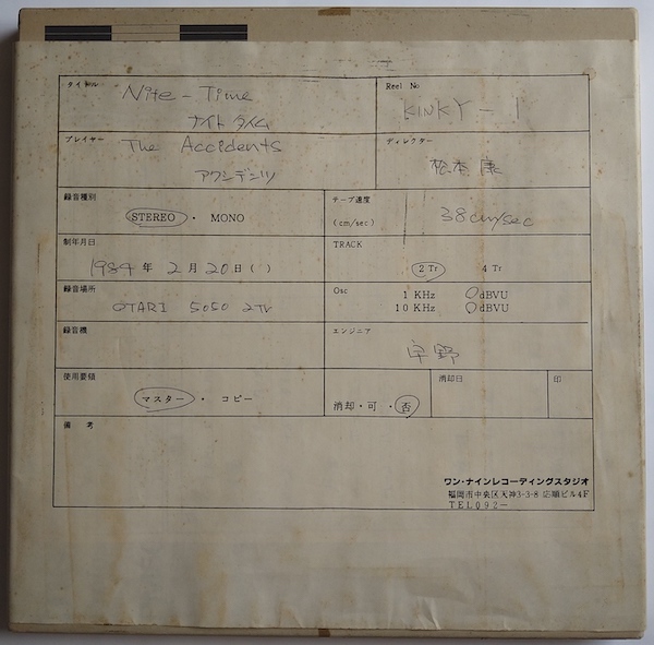 「19レコーディングスタジオ」ではまず、アクシデンツのレコードを作った。宇野陽一(●誰?)がエンジニアを担当した。スタジオ使用料とレコーディング料は待ってもらった。